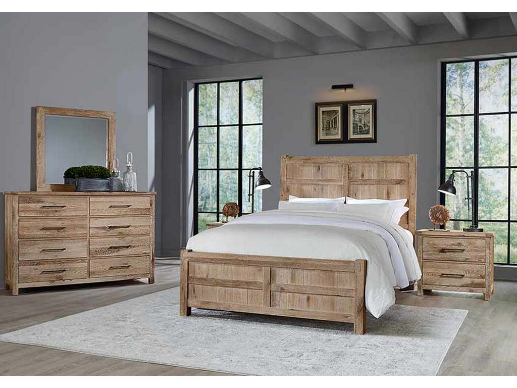 The Dovetail Collection's dominant design feature is the dovetail, a wood joinery technique dating back thousands of years which is displayed prominently near the top of each bed post, front top rim of each case piece, and all four corners of each mirror. This collection is designed for those who appreciate a natural reclaimed wood look. The splits, cracks, knots, and bold grain pattern is achieved through Accelerate the Aging Process technique. Until now only Mother Nature could make wood look this good