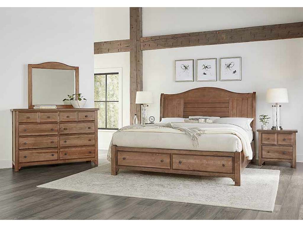 Vaughan Bassett 800-553-050B-502-555 Cool Farmhouse Queen Sleigh Bed with Storage Footboard Natural