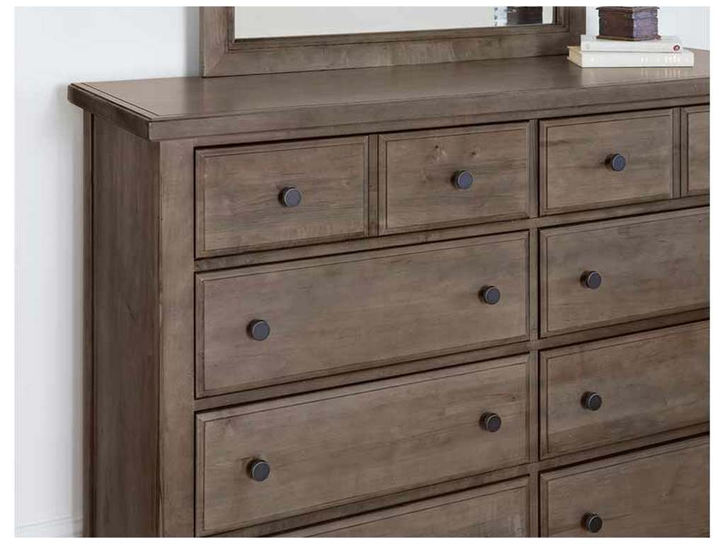 Product Description: Vaughan Bassett 801-002 Cool Farmhouse Dresser 8 Drawer Grey - 8 drawer dresser crafted of North American maple solids and veneers. Featuring clean lines and natural finishes with custom burnished pewter coin-edged pulls.