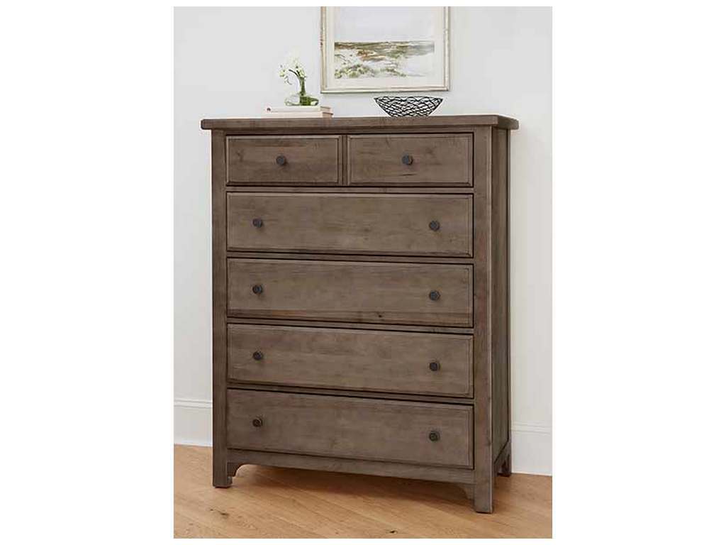 Product Description: Vaughan Bassett 801-115 Cool Farmhouse Chest 5 Drawer Grey - 5 drawer chest crafted of North American maple solids and veneers. Featuring clean lines and natural finishes with custom burnished pewter coin-edged pulls.