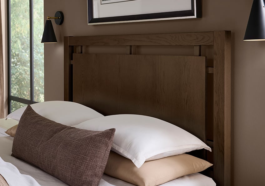 Vaughan Bassett Furniture Cal King Floating Panel Bed In Dark Oak (SKU: 840-667-766-944-MS1) is available at Hickory Park Furniture in Hickory, NC and nationwide. We delivery anywhere.