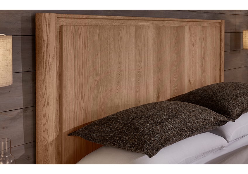 Introducing the Lodge & Loft bedroom collection from Vaughan-Bassett Furniture, a masterful blend of rustic lumber and modern lines, with every piece proudly made in the USA by American craftsmen and craftswomen. Each piece of Lodge & Loft features a blend of solid American Oak lumber and oak veneers. By using the finest American hardwoods, we are able to showcase the knots and bold grain patterns that are unique to white oak lumber, and which gives this bedroom collection an authentic, durable, and stylish feel.