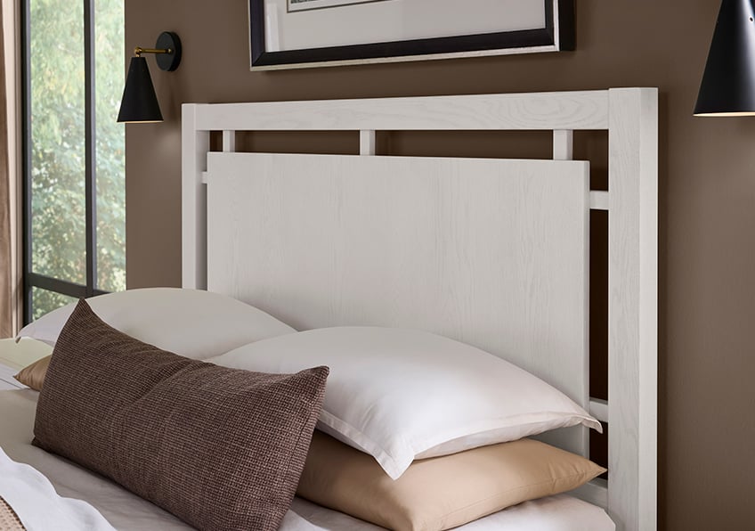 Vaughan Bassett Furniture King Floating Panel Bed With Footboard Storage In Soft White Oak (SKU: 844-667-066B-502-666) is available at Hickory Park Furniture in Hickory, NC and nationwide. We delivery anywhere.