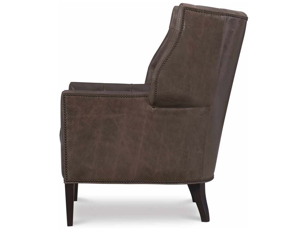 Product Description: Wesley Hall L555 Webster Leather Chair - Upholstered in a luxurious fabric with a tufted back for a sophisticated touch. Rolled arms and turned legs exude elegance. Sturdy hardwood frame ensures longevity. Perfect for upscale interiors.