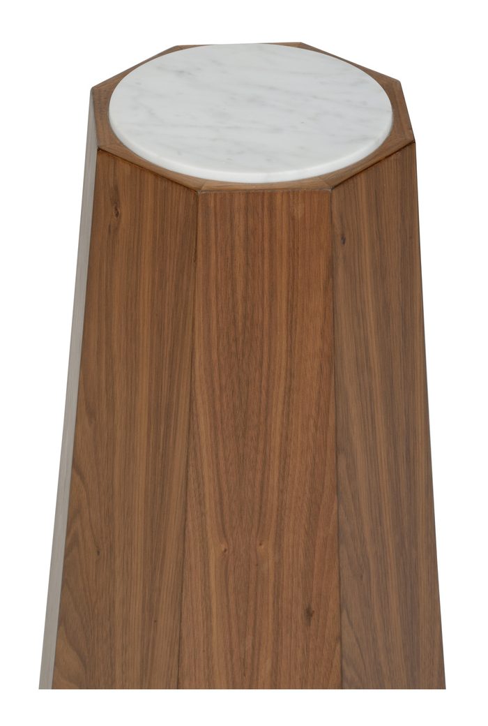 Product Description: Wildwood 295817 Laurence Accent Table - A thoughtfully elevated insert of honed Carrera marble rests perfectly atop a sculptural base made from rich walnut. The faceted body gives a sense of grounded luxury and makes the perfect drinks table.