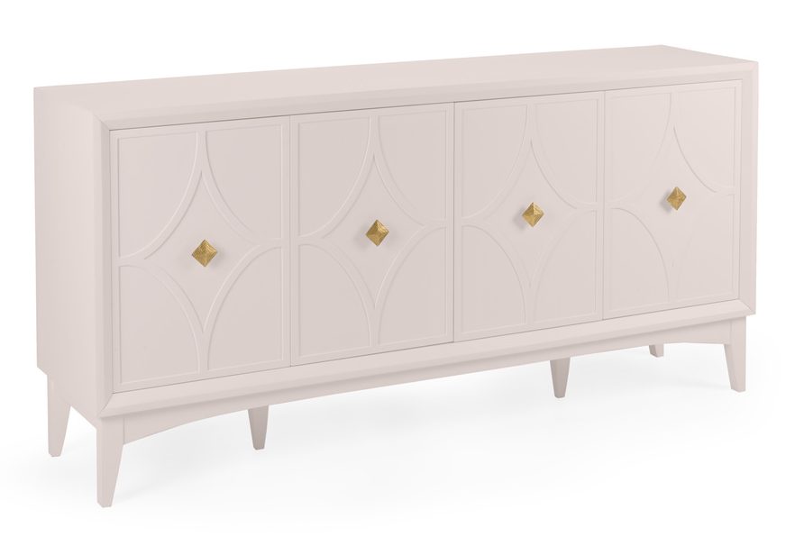 Product Description: Wildwood 400035-CUSTOM Diamond Sideboard Custom - Designed to complement your existing decor, this mid-century modern wood sideboard with a carved diamond motif on its four doors can be custom painted in your selection of any Benjamin Moore paint color. Inside each door is a shelf that adjusts to three positions making it ideal for storing extra dishes or serving pieces in your dining area. Please provide color name and number. Comes with antique brass finished hardware. Stainless steel finished hardware is available as an alternate option. Not intended for clothing storage.