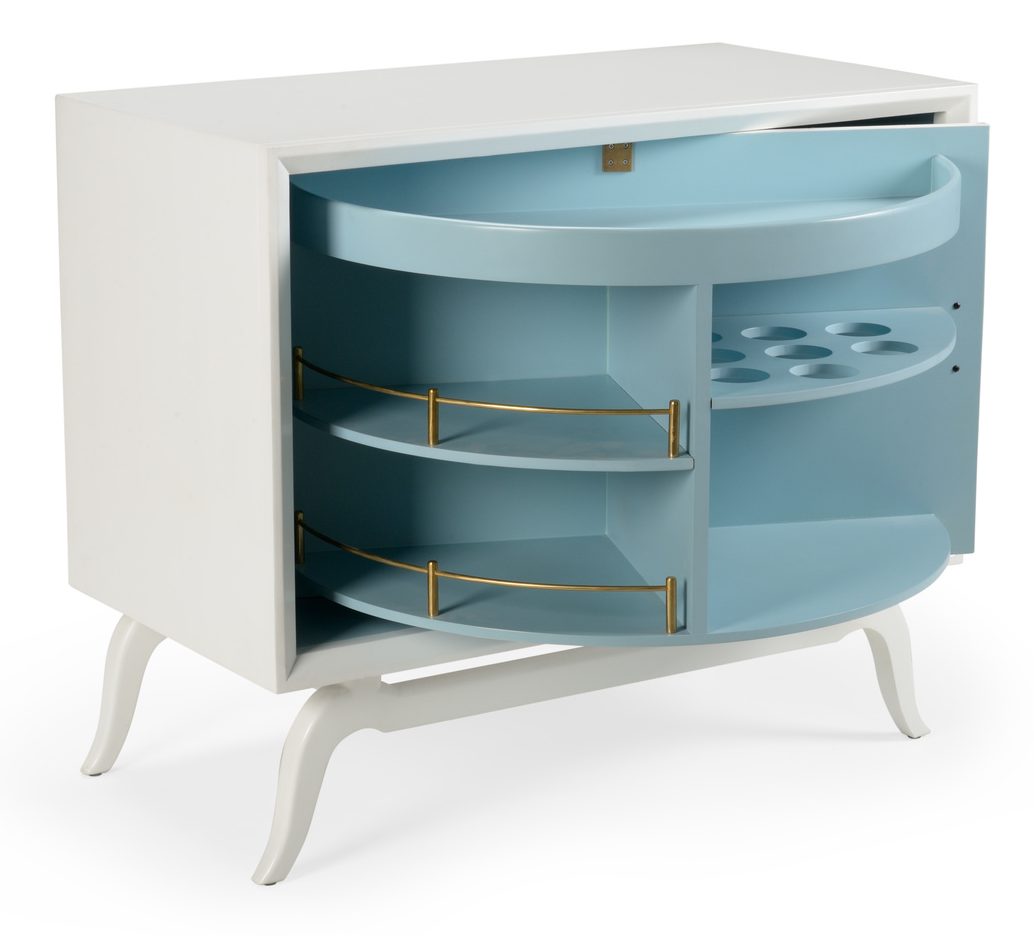 Product Description: Wildwood 490238 Sinatra Drinks Cabinet - Unique revolving door drinks cabinet. White painted exterior, blue interior. Polished brass inlay on door panel and hardware.
