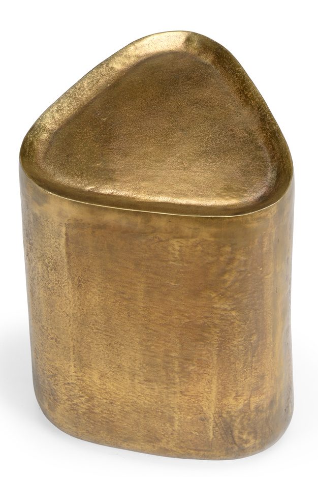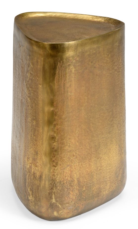 Product Description: Wildwood 490400 Estes Table - The Estes Drink Table has a soft edge forming a triangle, making the shape fit beside any seat. The finish on the Estes table is antique gold and it is a solid form.