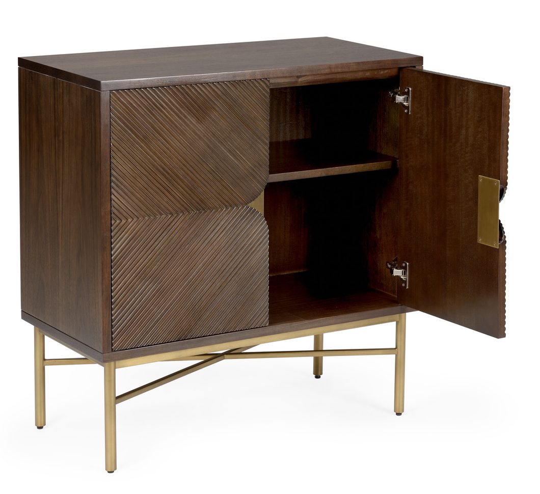 Product Description: Wildwood 490562 Samana Black Walnut Cabinet - Two door acacia wood accent cabinet with black walnut finish, brass finished hardware and base. Not intended for clothing storage.