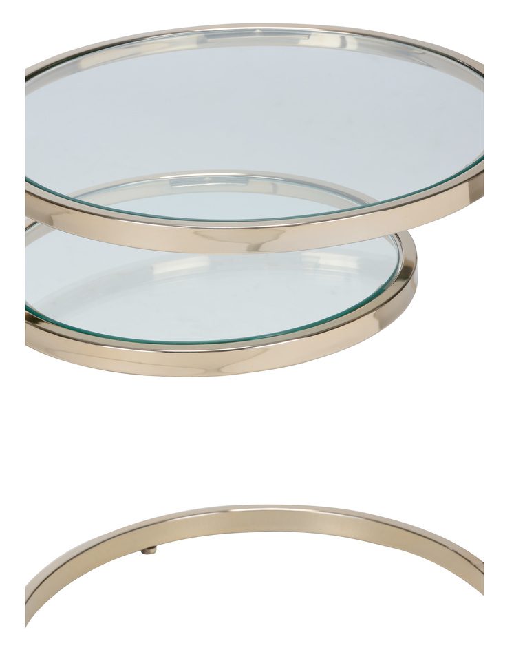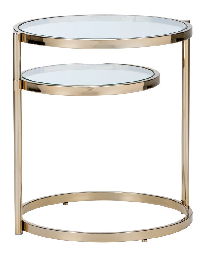 Product Description: Wildwood 490659 Gold Shelfie Table - Enhance the function in your home design with our "shelfie" side table. Crafted of stainless steel for a sturdy design, this simple, contemporary accent table features a glass tabletop and an adjustable glass shelf.