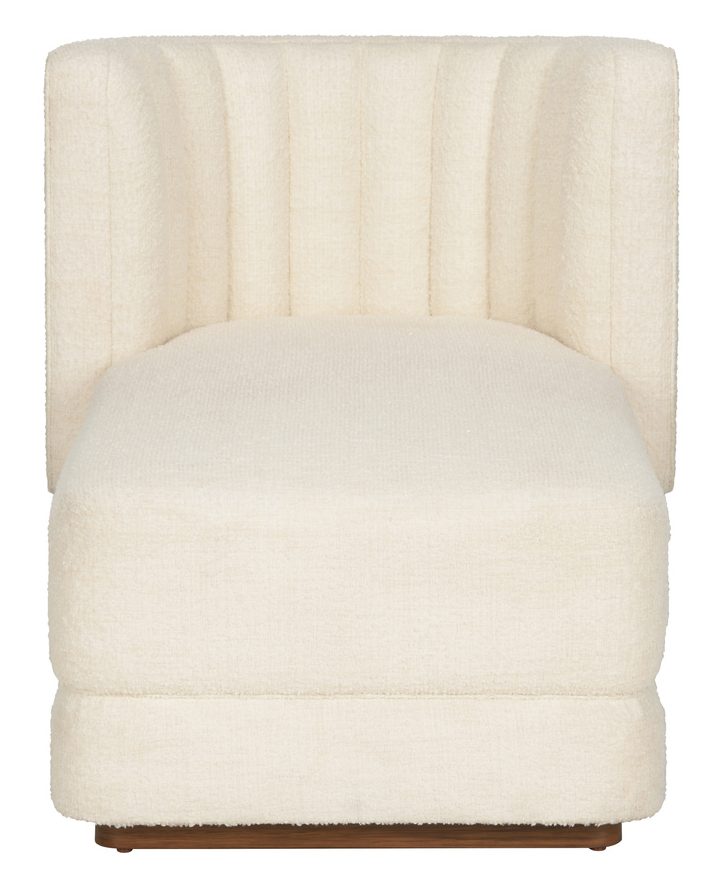 Product Description: Wildwood 490760 Piano Chaise - Indulge in the ultimate comfort with our Piano Chaise, a perfect blend of modern design and timeless elegance. Upholstered in a soft, performance bouclé fabric (poly blend), this chaise lounge offers a cozy and inviting feel, making it an ideal addition to any living room, bedroom, or reading nook. The chaise features a sleek, minimalist silhouette with a high, channel-tufted backrest that provides exceptional support and a touch of sophistication. The plush, generously padded seat ensures long-lasting comfort, whether you're lounging with a good book, taking a quick nap, or simply relaxing after a long day.