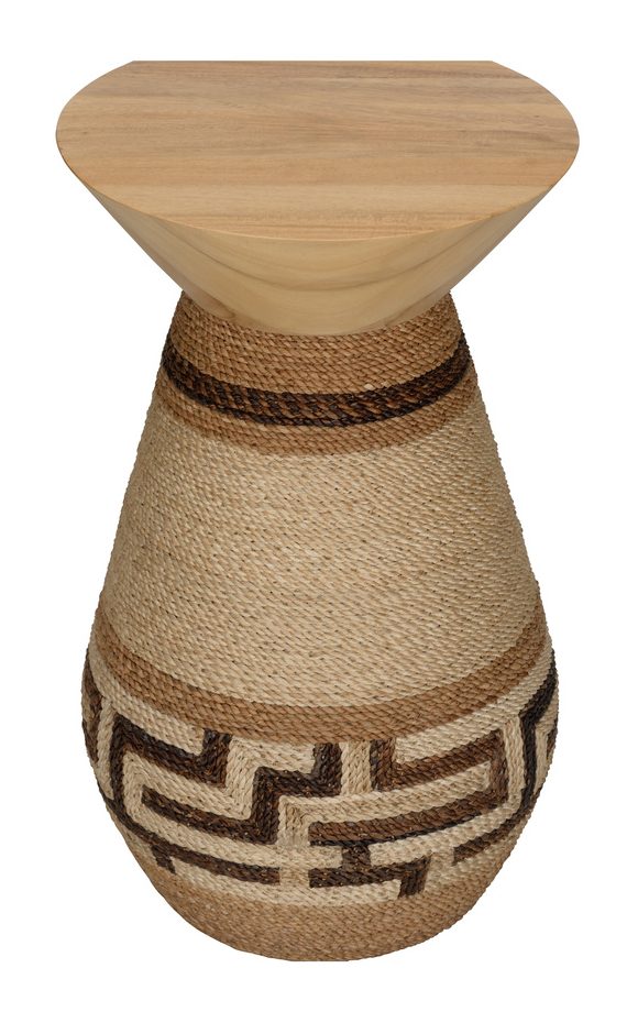 Product Description: Wildwood 490818 Calusa Drinks Table - Our Calusa Drinks Table makes a statement with its abaca rope wrapped base and wood top. Perfect for a drink or displaying a favorite decorative accessory, the drum shape enhances the visual interest.
