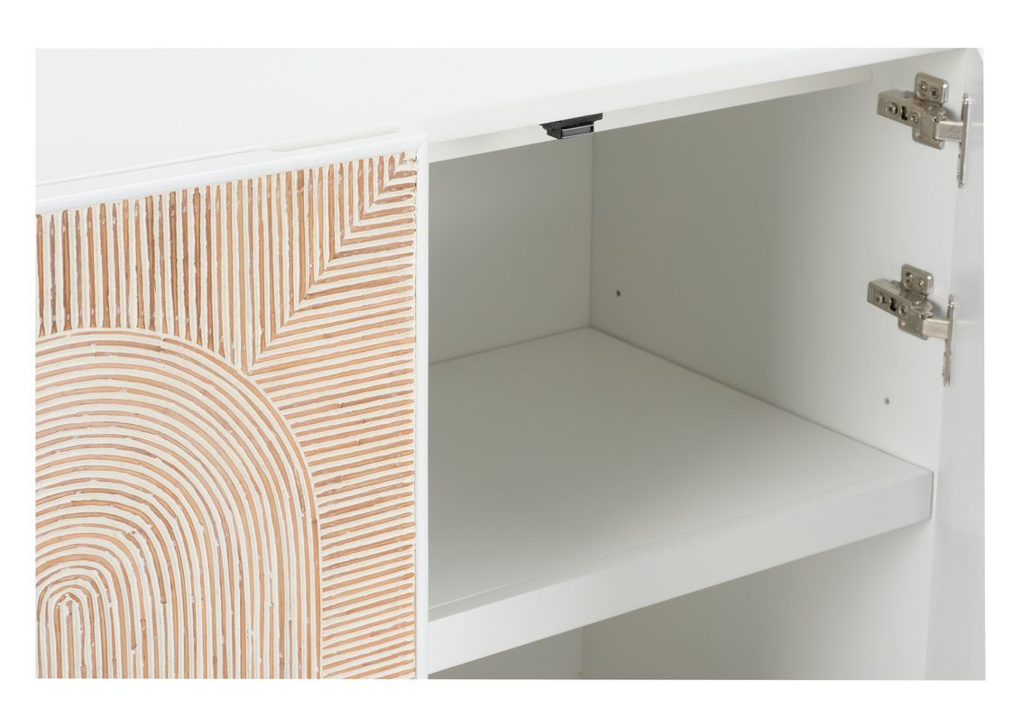 Product Description: Wildwood 490824 Aura Arch Cabinet - The whitewash finish on natural cane emphasizes the uninterrupted arch pattern created from the reeding on the Aura Arch Cabinet. Finished with three hinged doors with chamfered edges and one interior shelf, this cabinet can serve a variety of interiors.