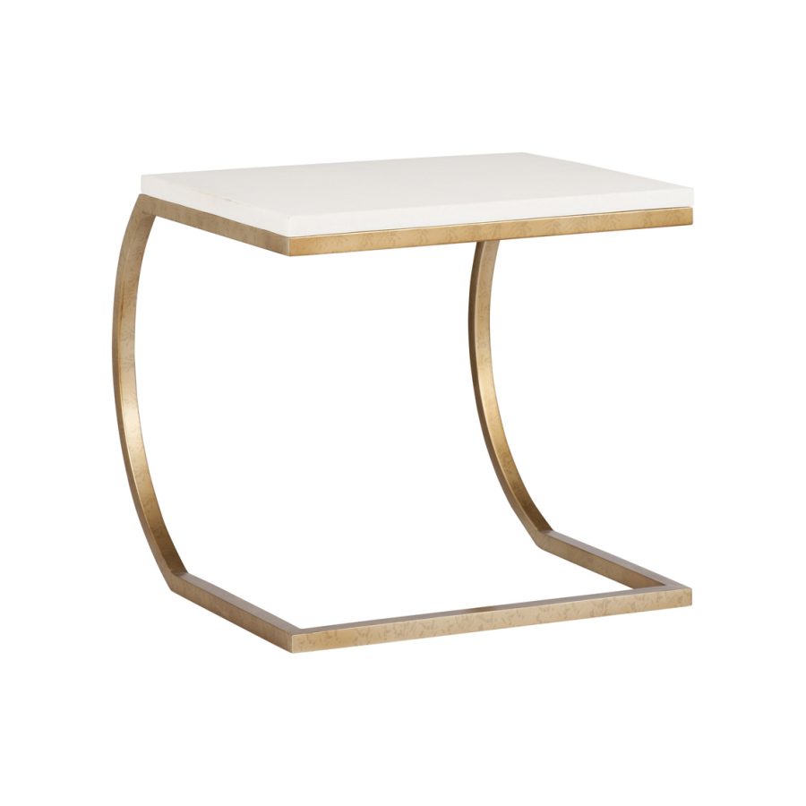 Product Description: Wildwood W10134 Ashland Side Table - Medium - Stylish accent piece that blends classic elegance with modern design. Featuring a gracefully curved brass-finished frame and a smooth, stone-like tabletop, it offers a balanced mix of durability and sophistication. Its medium scale provides versatile surface space for lighting, décor, or everyday essentials, making it ideal for living rooms, bedrooms, or seating areas. With its sculptural form and upscale materials, this table serves as both a functional piece and a striking design statement.