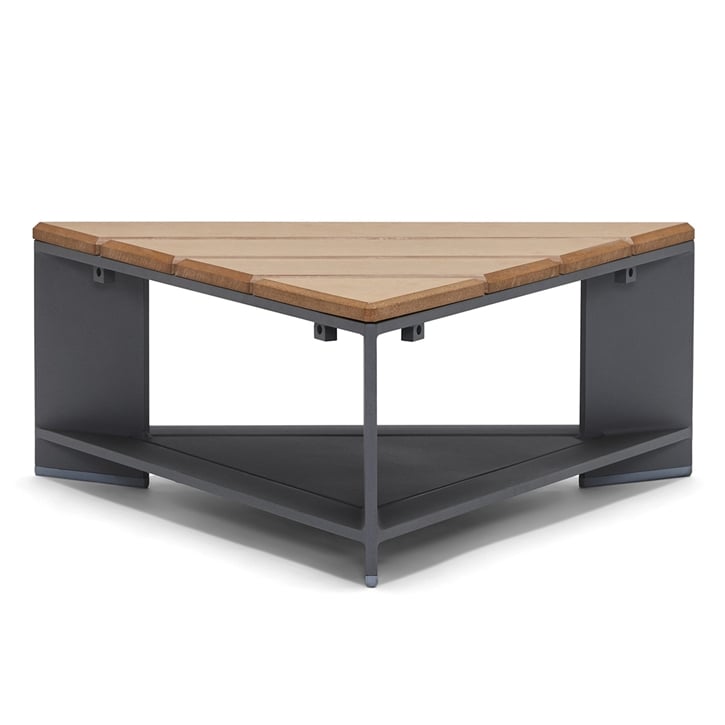 Product Description: Woodard 7B0T39N Gather Triangle Coffee Table with NexTeak Top - The Gather Triangle Coffee Table with NexTeak Top by Woodard is a versatile and stylish piece that is perfect for bringing people together. With endless configuration possibilities and a wide range of customization options, this coffee table truly stands out as a contemporary and durable addition to any outdoor space. Handcrafted and assembled in the USA, the attention to detail and quality of craftsmanship shines through in every aspect of this modern aluminum coffee table.