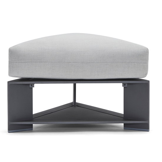 Product Description: Woodard 7B0T86 Gather Triangle Ottoman - The Gather Triangle Ottoman is a stylish and versatile piece of furniture designed to bring people together in a modern outdoor setting. This ottoman is part of the Gather collection, a 12-piece aluminum and NexTeak platform collection that allows for limitless configurations. With over 140 curated fabrics and 19 beautiful finishes to choose from, there is sure to be a combination that fits your style perfectly.