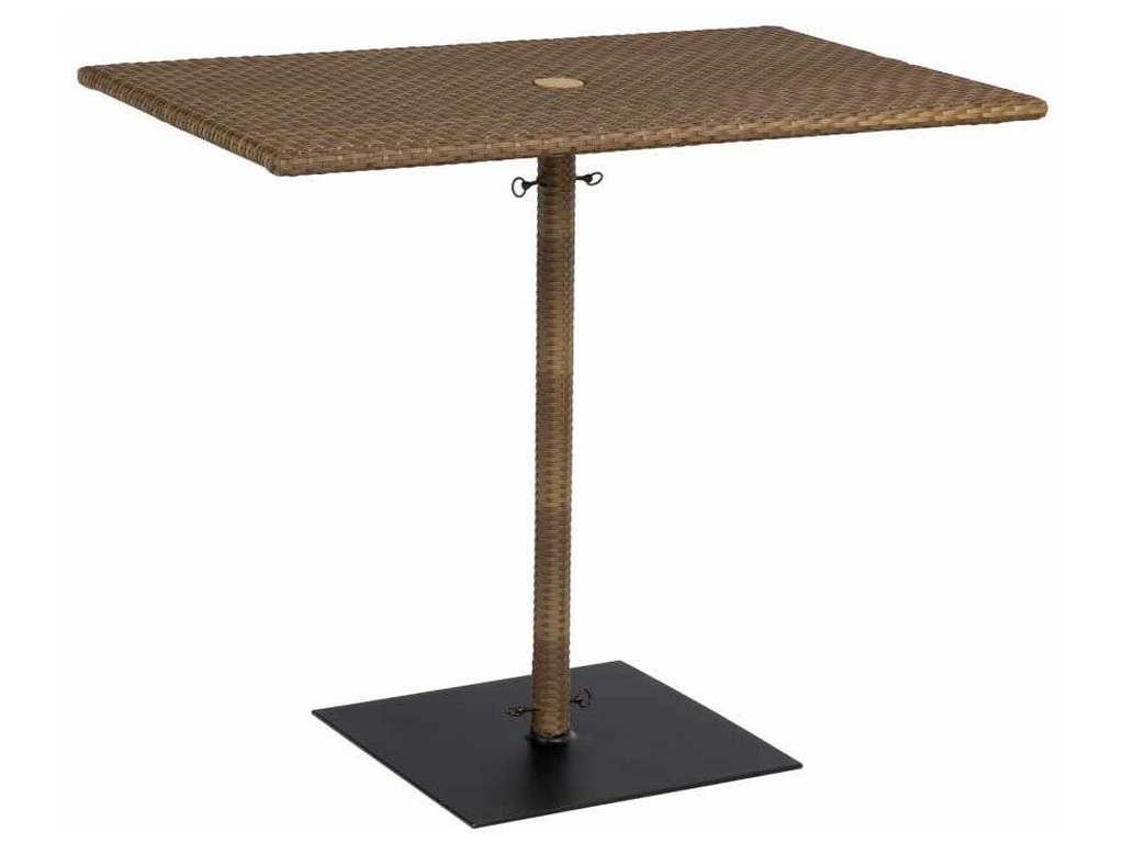 Product Description: Woodard S593938 Rectangular Umbrella Bar Height Table with Weighted Base - Available in Coffee or Mocha weaves.