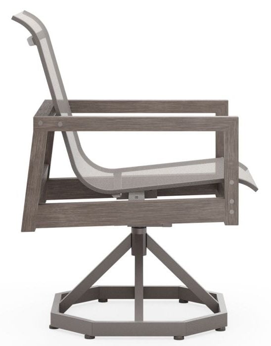 Product Description: Woodard S750515 Sierra Sling Swivel Rocking Dining Chair - A high-end piece of outdoor furniture that blends the ergonomic comfort of a recliner with the sleek profile of a modern dining chair. Part of Woodard’s popular Sierra collection, it’s designed for those who want to transition seamlessly from a meal to a relaxed conversation without leaving the table.