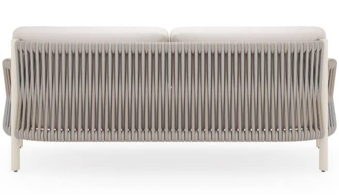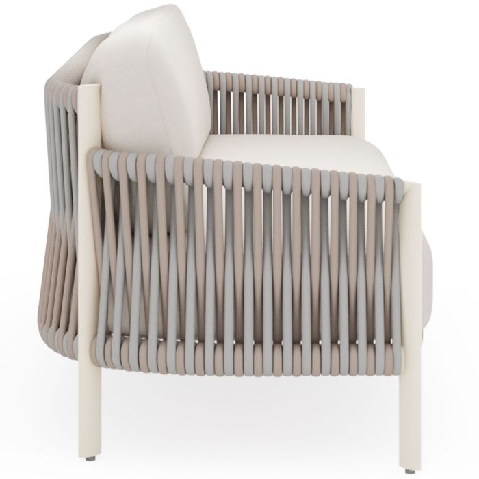 Eve is a handcrafted blend of artistry and sophistication. Its two-tone rope weave, wrapped around a sleek aluminum frame, creates an elegant ombre effect, adding depth and texture. The angled legs nod to mid-century modern design while maintaining a clean, modern look. Available in oyster frame with ash and linen rope or espresso frame with slate and umber rope. Also features custom cushions in 150 fabric options. Eve brings style and comfort to any space.