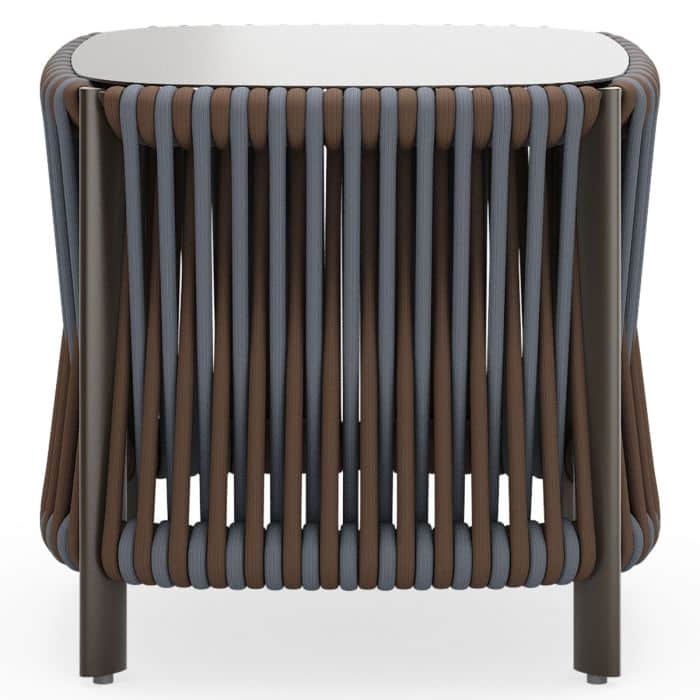 Eve is a handcrafted blend of artistry and sophistication. Its two-tone rope weave, wrapped around a sleek aluminum frame, creates an elegant ombre effect, adding depth and texture. The angled legs nod to mid-century modern design while maintaining a clean, modern look. Available in oyster frame with ash and linen rope or espresso frame with slate and umber rope. Also features custom cushions in 150 fabric options. Eve brings style and comfort to any space.